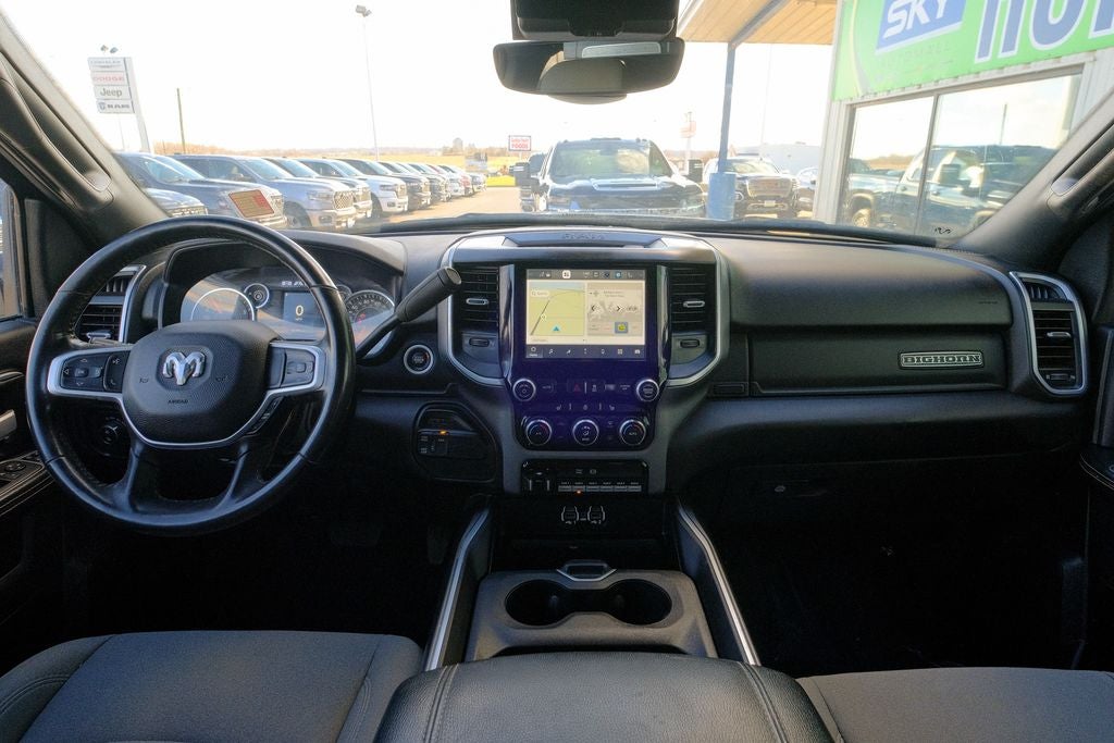 2nd Row In Floor Storage Bins, 40/20/40 Split Bench Seat, 4G LTE Wi-Fi Hot Spot, 5th Wheel/Gooseneck Towing Prep Group, Auto Power-Folding Mirrors, Auxiliary Switches Prep, Bed Utility Group, Black Exterior Mirrors, Brake assist, Center Hub, Clearance Lamps, Dual Glove Boxes, Exterior Mirrors Courtesy Lamps, Exterior Mirrors w/Heating Element, Exterior Mirrors w/Supplemental Signals, Foam Bottle Insert (Door Trim Panel), Footwell Courtesy Lamp, Forward & Reverse Utility Lights, Front Fog Lamps, Glove Box Lamp, Heated door mirrors, Heated Front Seats, Heated Seats & Wheel Group, Heated Steering Wheel, I/P Mounted Auxiliary Switches, Leather Wrapped Steering Wheel, LED Bed Lighting, Level 1 Equipment Group, Locking Lower Glove Box, Mirror Running Lights, MOPAR Deployable Bed Step, MOPAR Spray In Bedliner, ParkView Rear Back-Up Camera, Power Adjust Mirrors, Power Heated Fold Telescopic Mirrors, Power Telescoping Mirrors, Power-Adjustable Convex Aux Mirrors, Premium Cloth 40/20/40 Bench Seat, Quick Order Package 21Z Big Horn, Radio: Uconnect 5 w/8.4 Display, Rear Dome w/On/Off Switch Lamp, Rear Window Defroster, Remote keyless entry, Remote Start System, Snow Chief Group, Steering Wheel Mounted Audio Controls, Wheels: 18 x 8.0 Polished Aluminum.